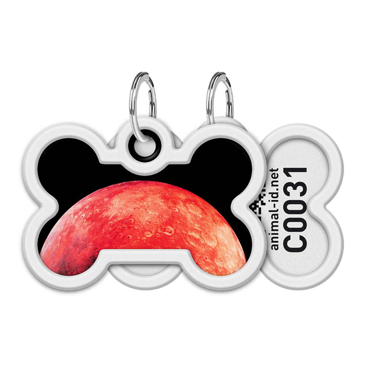 Адресник для собак і котів металевий WAUDOG Smart ID з QR паспортом, малюнок “Марс”, кістка, Д 40 мм, Ш 28 мм