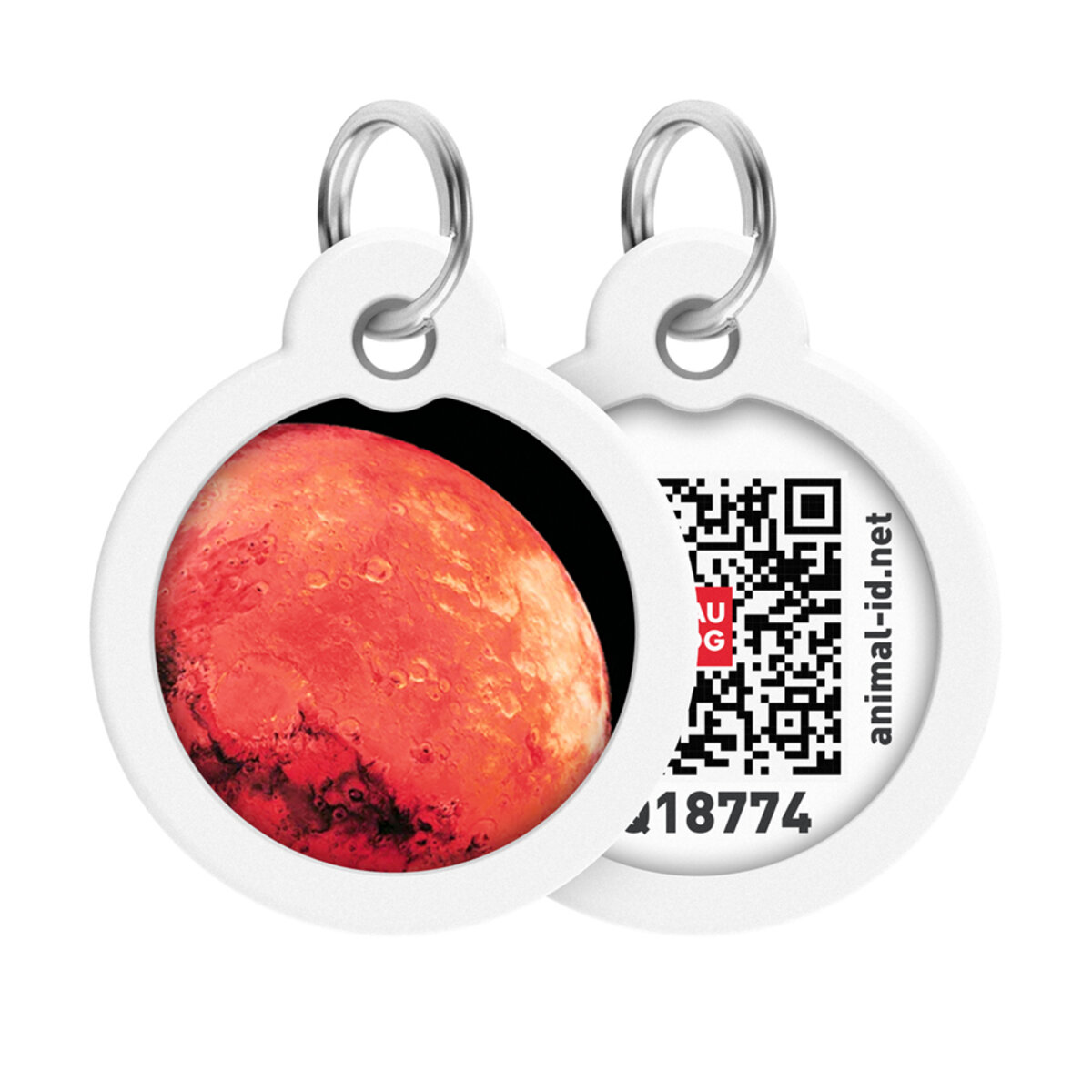 Адресник для собак і котів металевий WAUDOG Smart ID з QR паспортом, малюнок “Марс”, коло, Д 30 мм