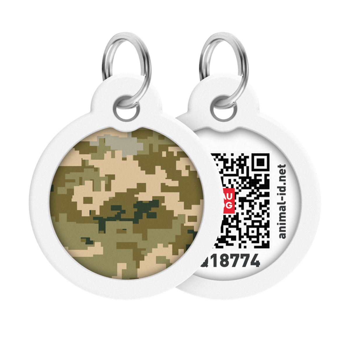 Адресник для собак і котів металевий WAUDOG Smart ID з QR паспортом, малюнок “Мілітарі”, коло, Д 30 мм
