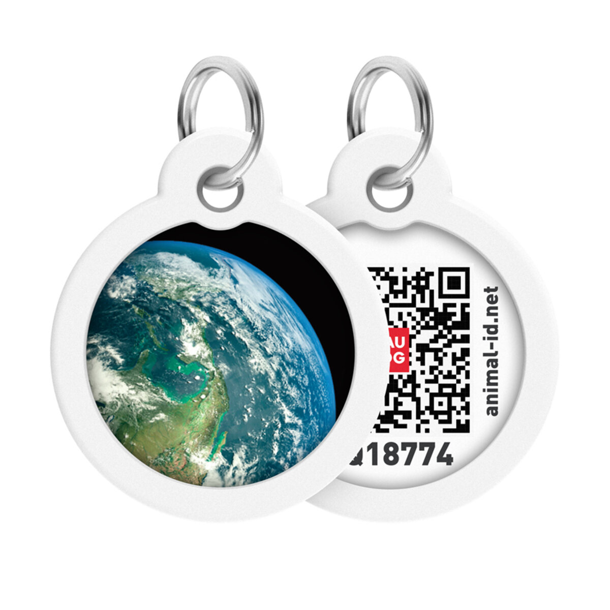 Адресник для собак і котів металевий WAUDOG Smart ID з QR паспортом, малюнок “Земля”, коло, Д 30 мм