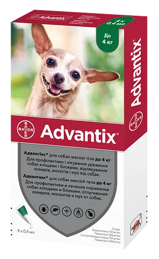 | <4 кг | Адвантікс Спот Он для собак до 4 кг, |