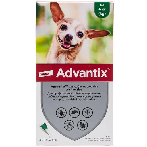 Адвантікс краплі – 0,4мл*4 шт. Для собак до 4 кг. ТМ “Elanсo”