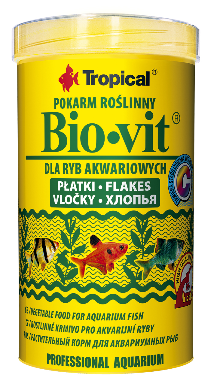 BIO-VIT ‒ это корм в виде хлопьев, богатый растительными компонентами (в том числе: крапива, шпинат, зародыши пшеницы и спирулин), предназначенный для ежедневного кормления растительноядных аквариумных рыб и внесения разнообразия в диету всеядных рыб. Незаменим в общих аквариумах с многовидовым заселением. Благодаря оптимально балансированному составу и добавке необходимых витаминов и микроэлементов обеспечивает правильный рост и развитие рыб. Стойкость рыб к заболеваниям усиливает добавка стабилизиро-ванного витамина С. Высокое содержание клетчатки, а также хлорофилл (происходящий, в частности, из крапивы и шпината) уменьшают риск возникновения запоров, а добавка цеолита благоприятно влияет на пищеваритель¬ную систему и удаление токсинов из организма рыб. КОРМЛЕНИЕ: многократно в течениe дня малыми порциями.