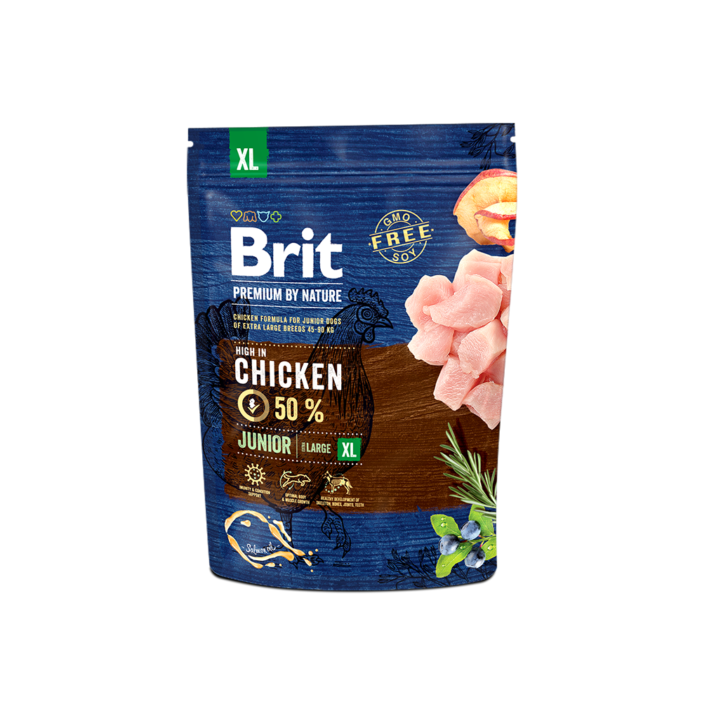 Здоровий розвиток скелета Колаген, ракоподібні та зеленогубі молюски мають високий вміст хондропротекторів та підтримують здоровий розвиток суглобів та хрящів. Збалансований вміст кальцію та фосфору для здорового розвитку кісток та зубів. Оптимальний розвиток тіла і м’язів Високий вміст сушеної курки без кісток – природне джерело білка, що легко засвоюється, для оптимального росту і розвитку м’язів. Підтримка імунітету та здоров’я Фрукти, трави та куркума містять багато вітамінів та позитивно впливають на імунну систему. Маннанолігосахариди та фруктоолігосахариди підтримують оптимальну флору кишечника. Склад: курка 50% (дегідратована курка 30%, курка без кісток 20%), овес, пшениця, курячий жир (консервований токоферолами), кукурудза, сушені яблука, лососева олія (2%), гідролізована куряча печінка, пивні панцирі ракоподібних (джерело глюкозаміну, 260 мг/кг), хрящі (джерело хондроїтину, 180 мг/кг), трави та фрукти (гвоздика, цитрусові, розмарин, куркума, 150 мг/кг), маннанолігосахариди (150 мг) (100 мг/кг), Юкка Шідігера (Yucca schidigera) (100 мг/кг), сушена ромашка (90 мг/кг), зеленогубі молюски (джерело глюкозаміногліканів 60 мг/кг), сушена чорниця (60 мг/кг). Протеїн 31% Жир 16% Енергетична цінність: 3860 ккал/кг Рекомендації з годівлі: Подавати корм сухим або зволоженим теплою водою. Для цуценят щоденний раціон, що рекомендується, зазначений у таблиці годівлі, повинен бути розділений на 2-3 рівні частини протягом дня. Рекомендована денна норма вказана у таблиці годівлі. Якщо Ви вперше годуєте Brit Premium, використовуйте менші порції та змішуйте їх із попереднім кормом, поступово збільшуючи частку Brit Premium. Завжди слідкуйте за наявністю свіжої питної води. Аналітичний склад: сирий протеїн 31.0% жир 16.0% волога 10.0% сира зола 7.0% сира клітковина 2.2% кальцій 1.6% фосфор 1.1% Омега 3 0.2% Омега 6 1.9% Добавки на 1 кг: 0 2 (E671) 1 200 МО вітамін E (α-токоферол) (3a700) 500 мг біотин (3a880) 0.6 мг хлорид холіну(3a890) 600 мг хелат цинку гідрату амінакислот(3b606) 90 мг 0 марганцю гідрату амінокислот(E5) 35 мг йод(3b201) 0.65 мг хелат міді гідрату амінокислот(E4) 15 мг Органічна форма селену(3b8.10) 0.2 мг Містить антиоксиданти схвалені в ЕС 1b304) та екстракт розмарину.