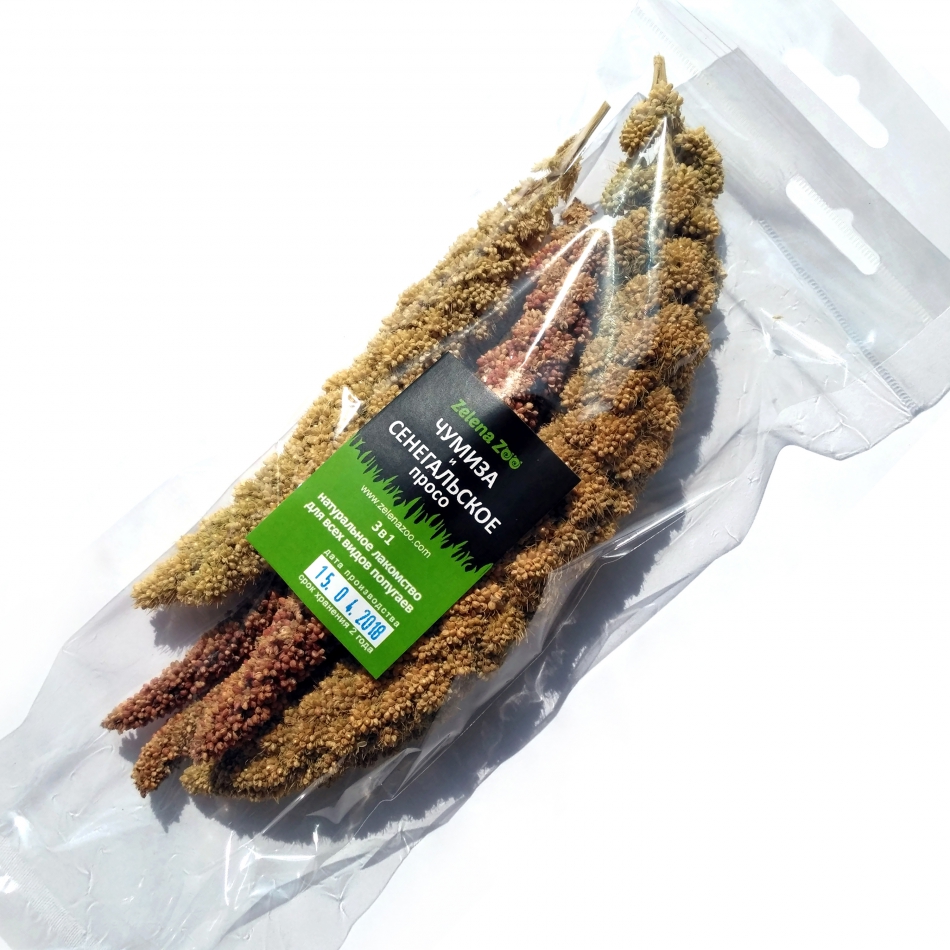 Чумиза і Сенегальське просо в колосках для папуг та гризунів 30 г Zelena Zoo – це прекрасний корм для птахів та гризунів, особливо для хвилястих папуг і дрібних декоративних птахів. Чумиза це не основний корм, тому давати чумизу потрібно обмежено, а то ваш птах відмовиться їсти свій корм і буде їсти тільки чумизу!