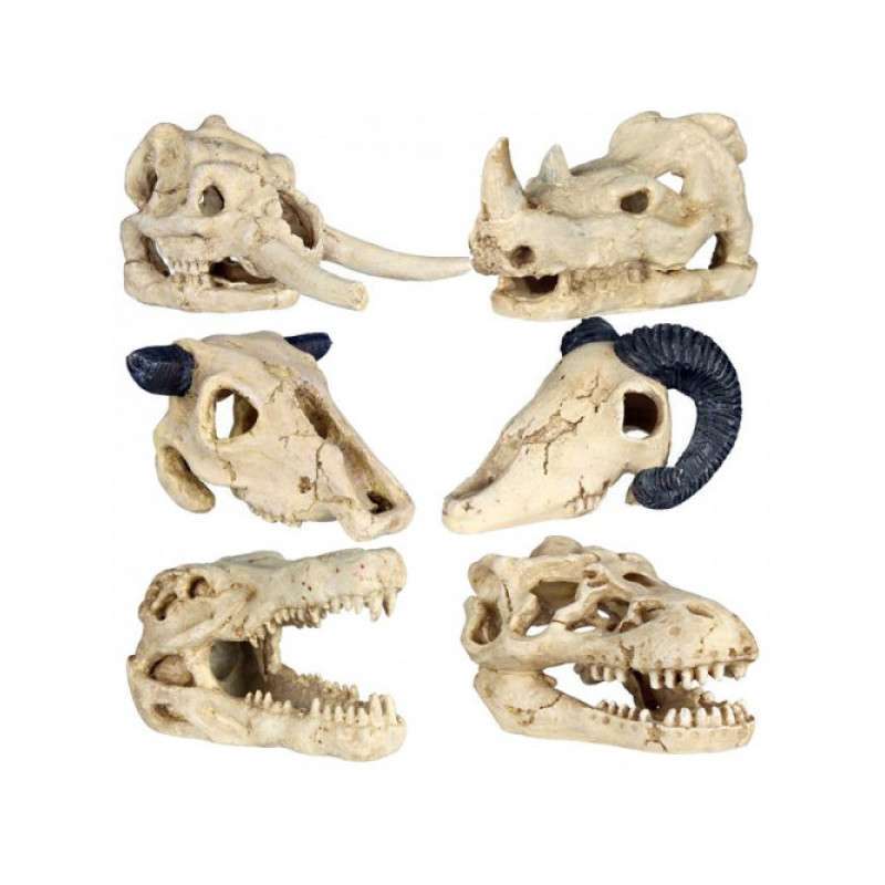 Декорация для декора аквариума в виде черепов разных животных. Легко чистятся. Подходят для использования как в пресноводных так и в морских аквариумах. Не влияют на качество воды.