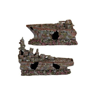 Грот для аквариума Разбитый корабль изготовлен из безопасной полиэфирной смолы высокого качества, долговечен, прекрасно выглядит в любом аквариуме. С помощью декораций можно устроить укрытия для донных и пугливых рыб, а также, просто украсить ваш аквариум, создать композицию на любой вкус.