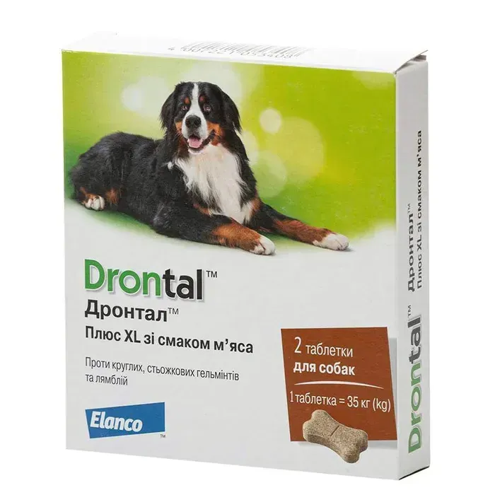 Дронтал Плюс XL (Drontal Plus XL) таблетки смак м’яса. Для собак на 35 кг. ТМ “Elanco”
