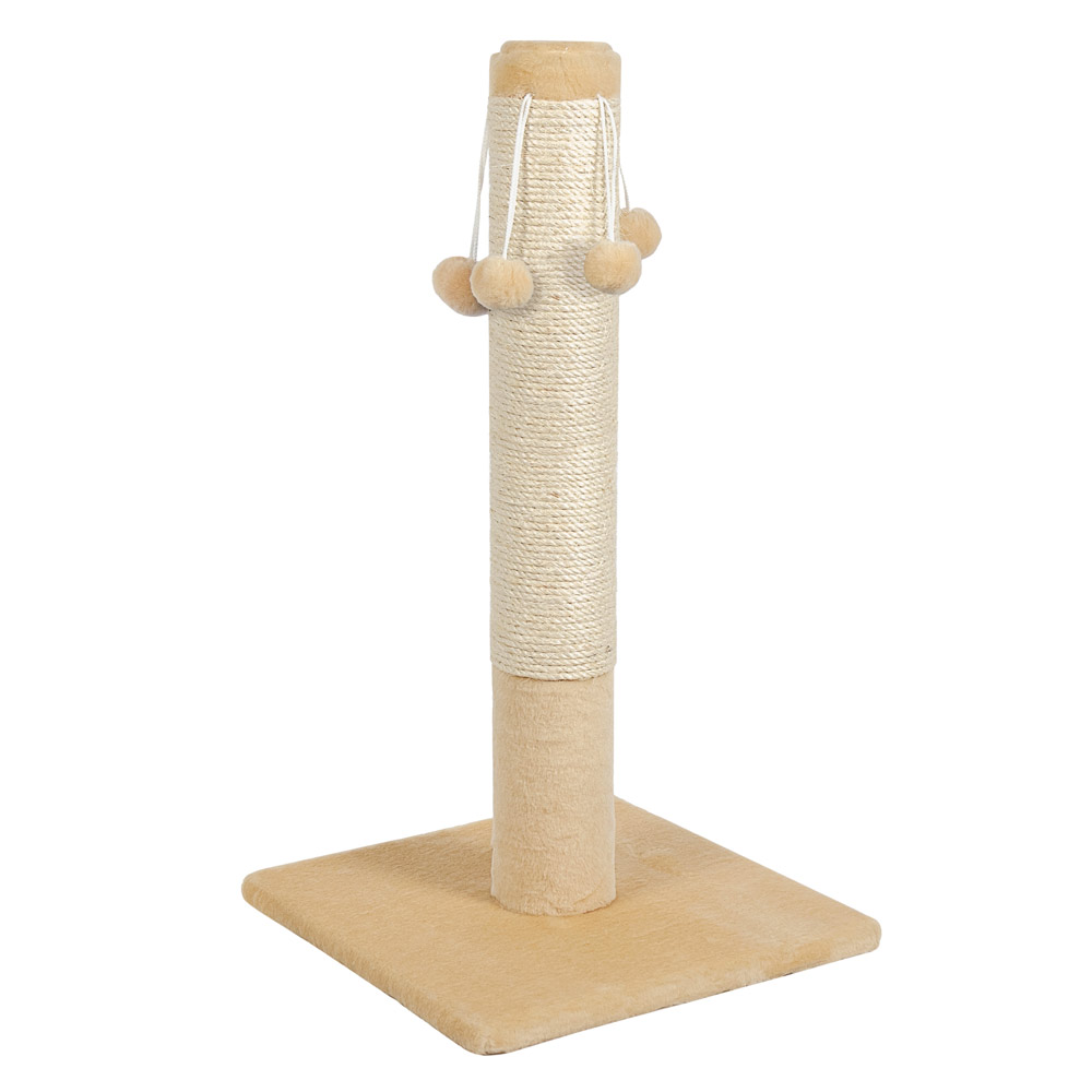Дряпка Природа Д04 стовпчик з чотирма бубонами, бежева, 36х36х67