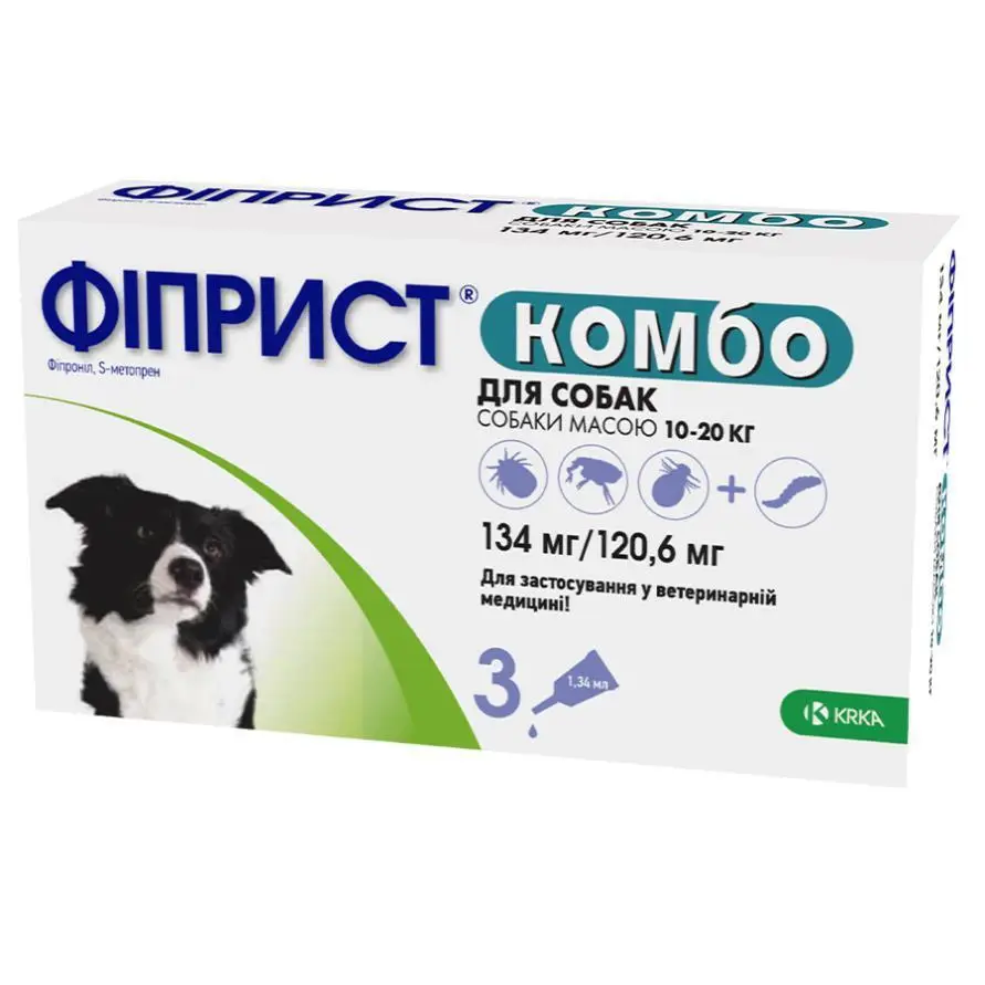 Фиприст Комбо (Fiprist Combo) капли для собак 10-20 кг, 134 мг/120,6 мг, 1,34 мл х 3 шт