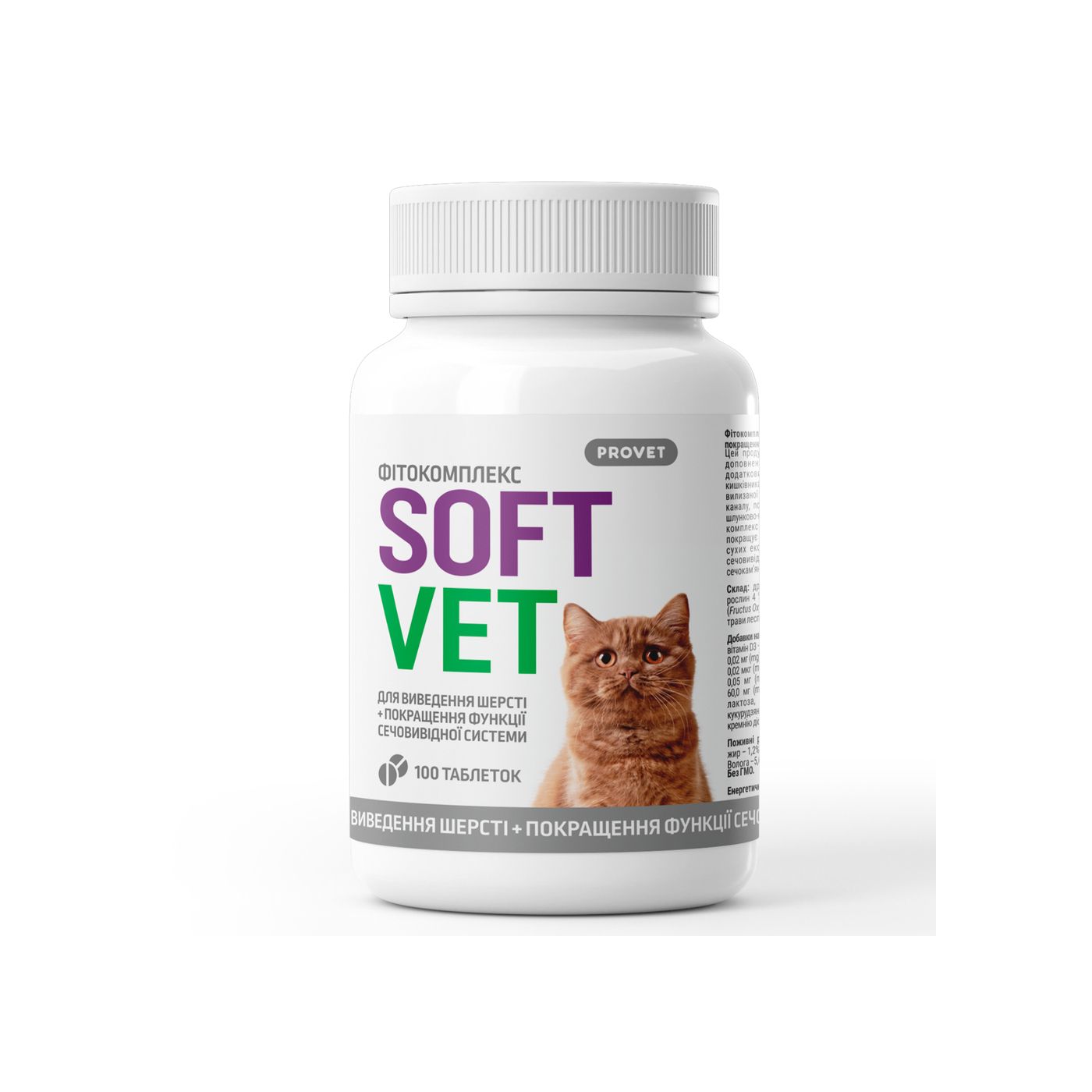 Фітокомплекс Provet SOFTVET для котів для виведення шерсті та покращення функції сечовивідної системи100 таб