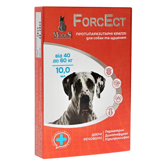 ФорсЕкт (ForcEct) протипаразитарні краплі для собак та цуценят 40-60 кг, 10,0 мл, MODES (від бліх, від кліщів)