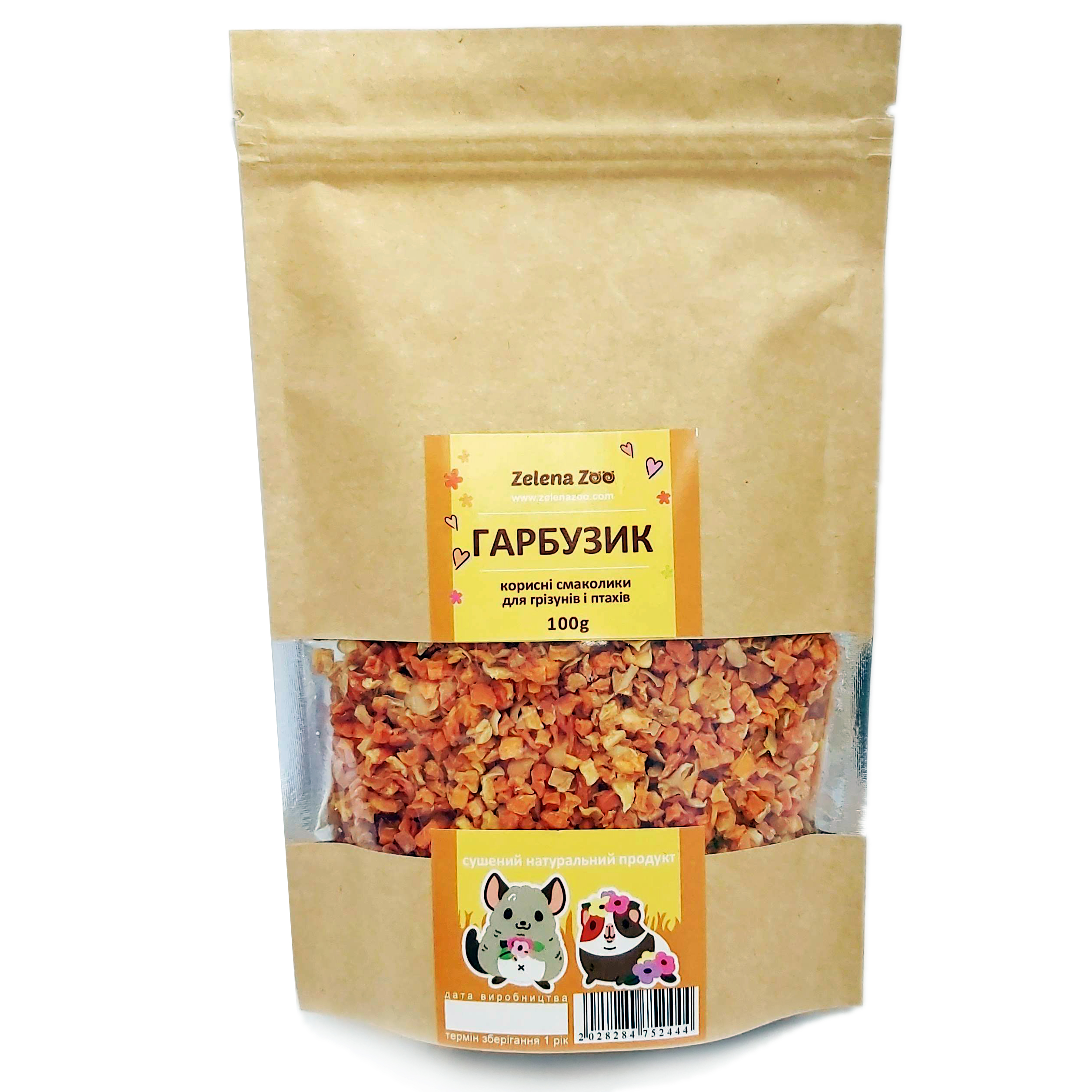 Гарбузик сушений для гризунів та папуг 80 г Zelena Zoo Зелена зоо