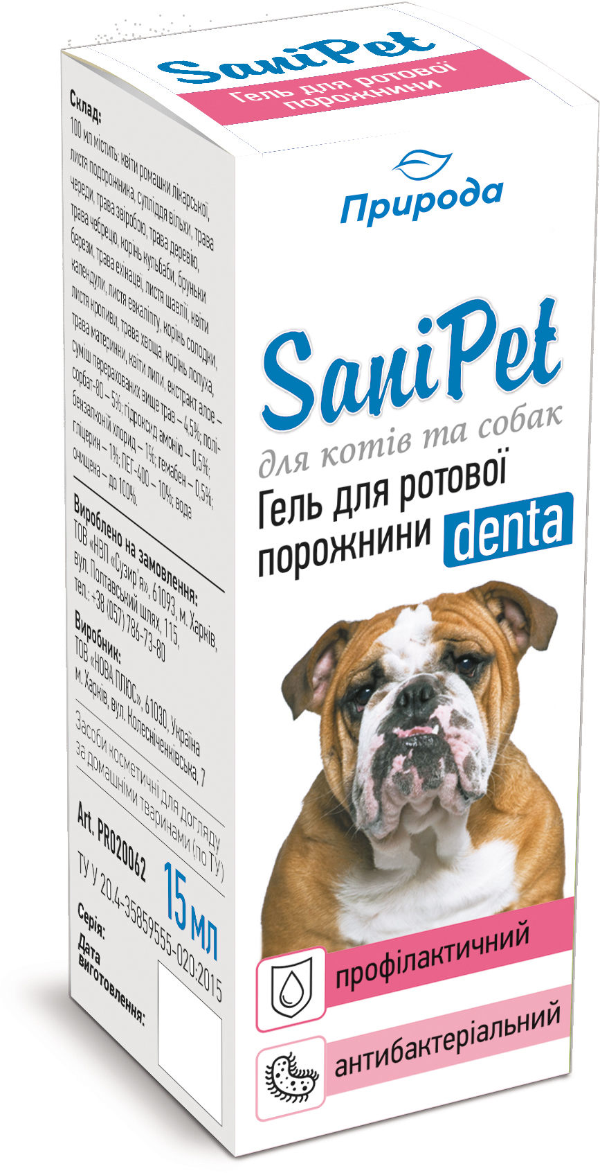 Гель для ротовой полости “SaniPet” капли 15мл (для кошек и собак)