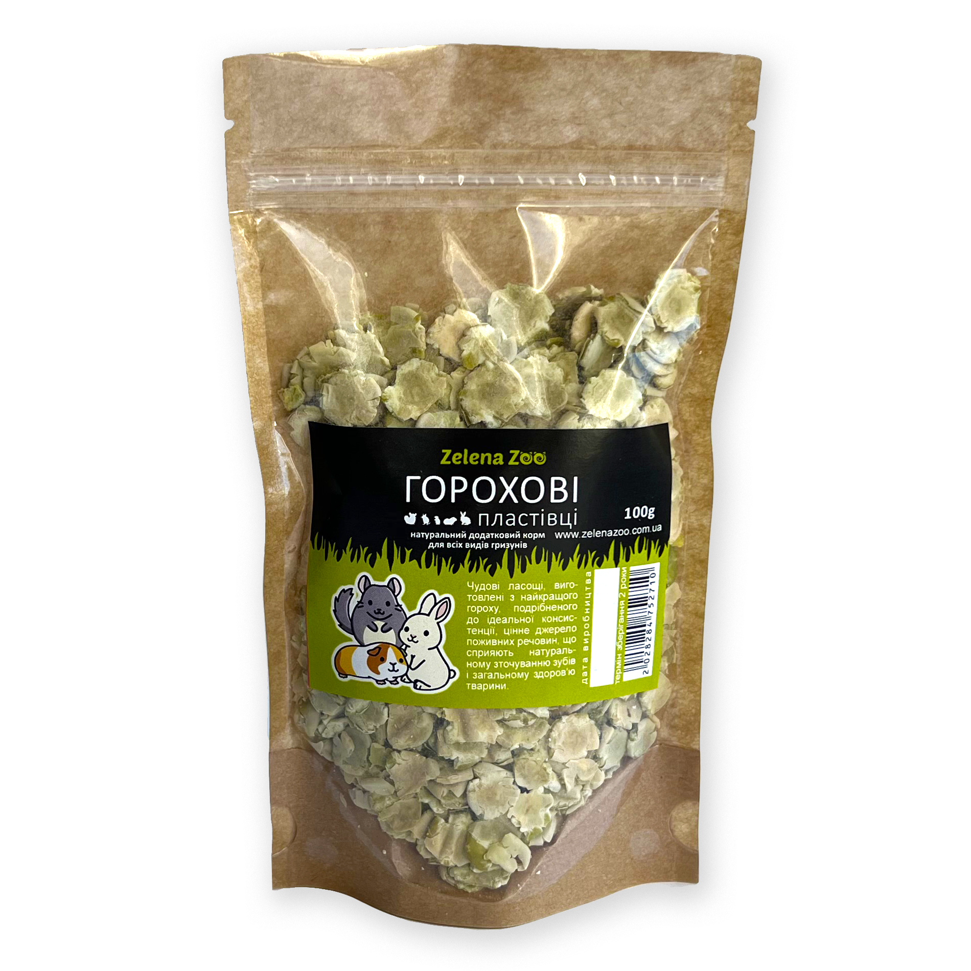 Горохові пластівці для гризунів 100 г Zelena Zoo – ласощі для кроликів, хом’яків, морських свинок, шиншил, дегу, щуриків та інших.