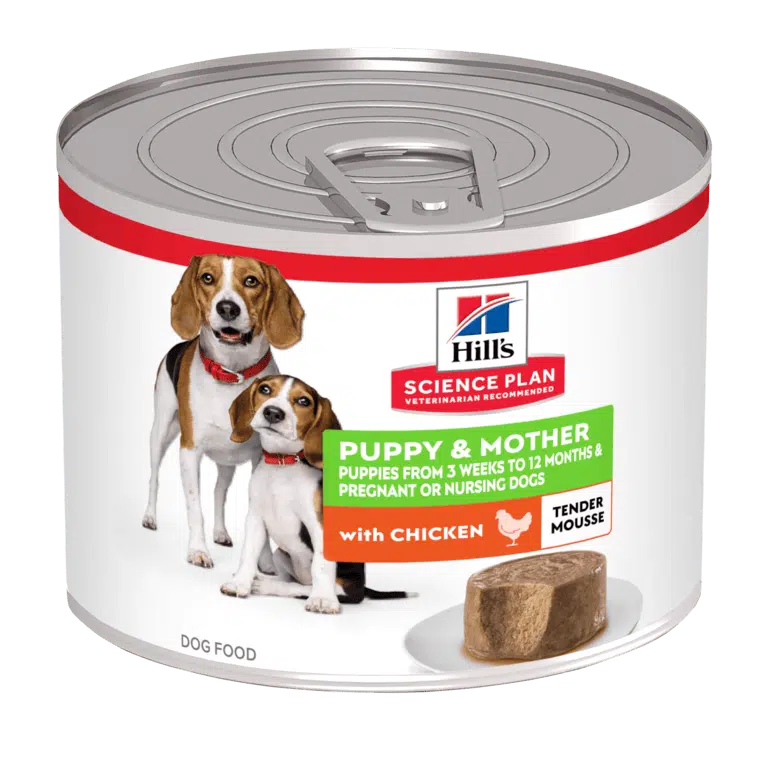 Вологий корм Hill’s SCIENCE PLAN Puppy & Mother Tender Mousse рекомендований для цуценят віком від народження до 1 року, а також для вагітних і годуючих собак.