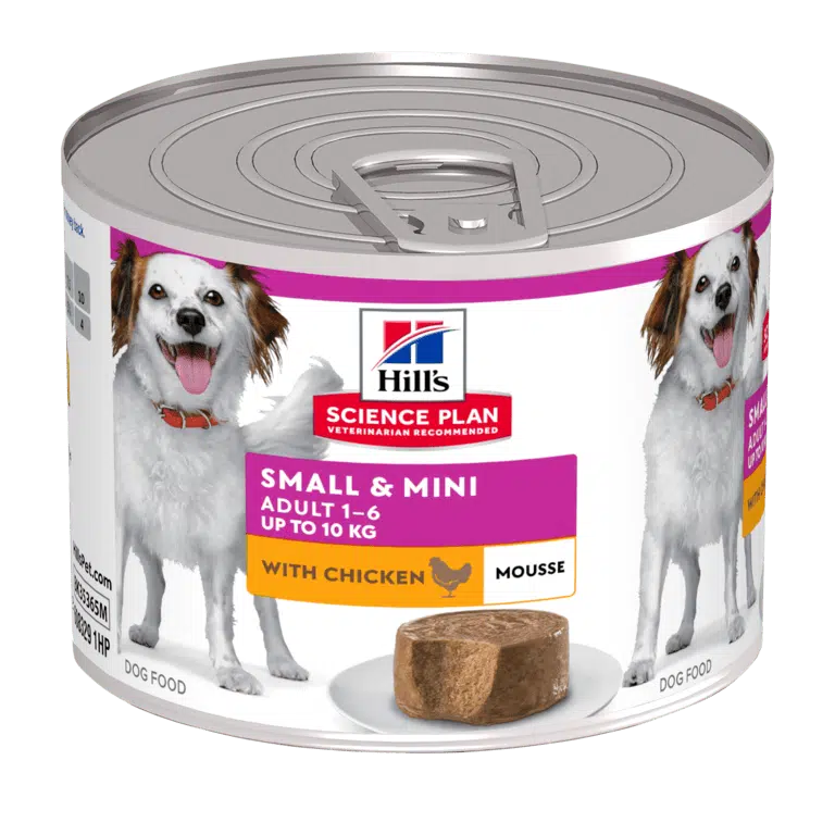 Вологий корм Hill’s SCIENCE PLAN Adult Small & Mini з куркою рекомендований для дорослих собак віком 1-6 років вагою до 10 кг.