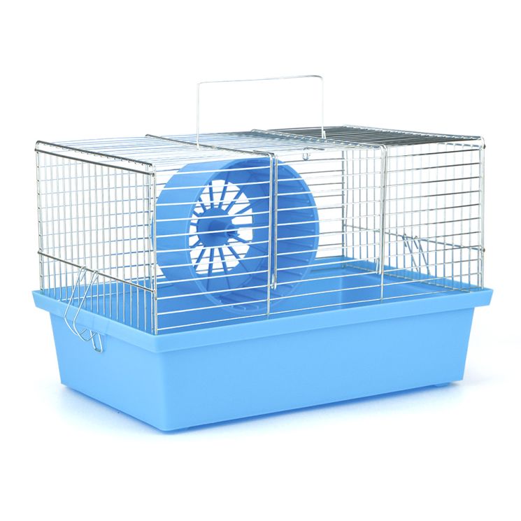 Декоративна клітка невеличких розмірів, виготовлена з безпечних для гризунів матеріалів. У комплектацію входить барабан для розваг її мешканців.