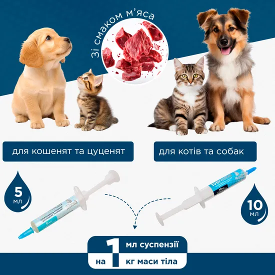 Івермітел (Ivermitel) антигельмінтна суспензія для кошенят та цуценят зі смаком м’яса 5 мл, MODES