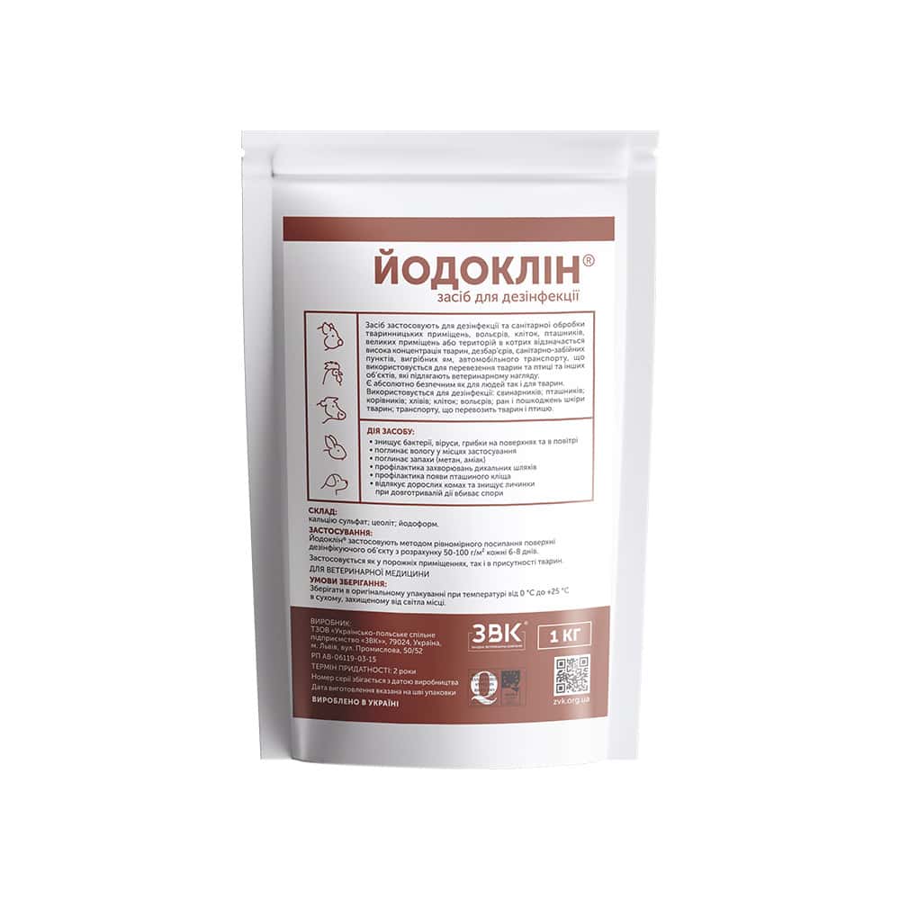 «Йодоклін®» – препарат для сухої дезінфекції на основі йодоформу, який застосовують для дезінфекції та санітарної обробки тваринницьких приміщень.