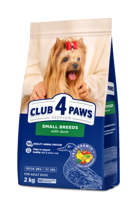 Поживний сухий корм Club 4 Paws Adult Small Breeds Duck з качкою для дрібних собак на кожен день