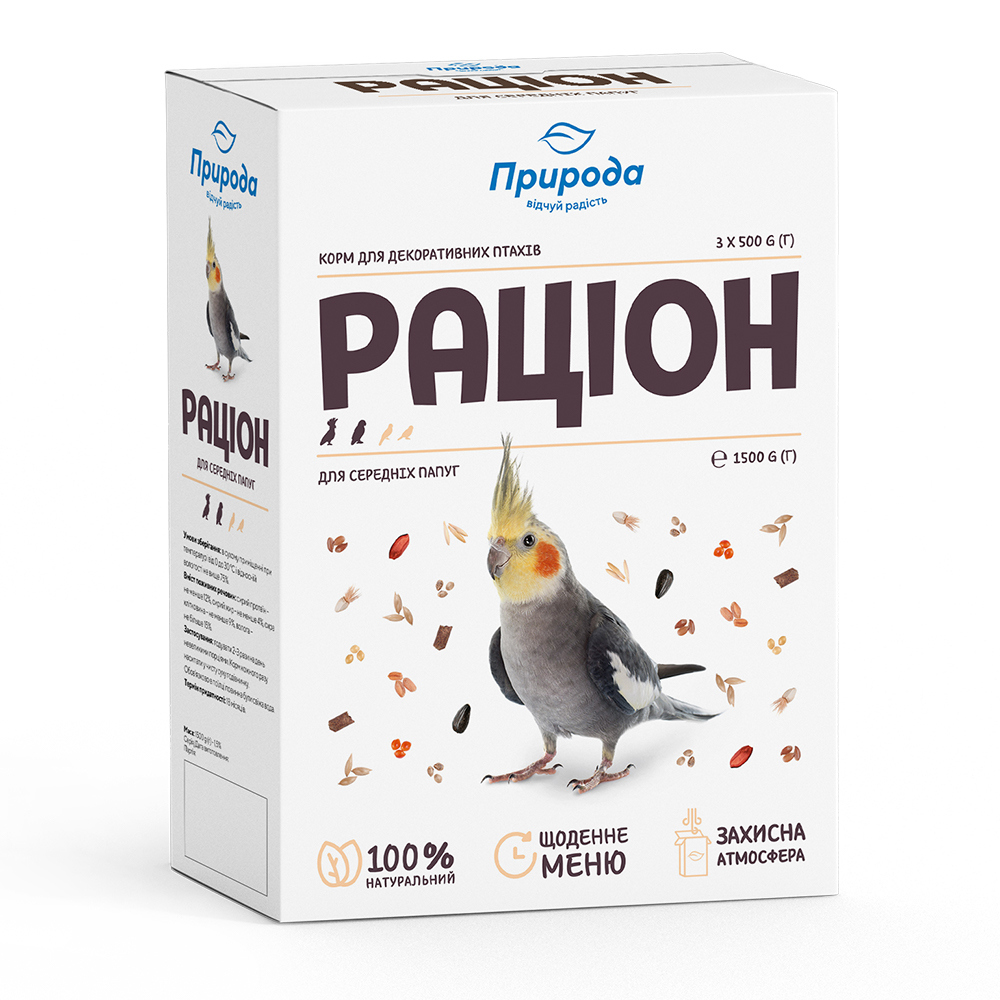 Корм Раціон для середніх папуг. 1,5 кг