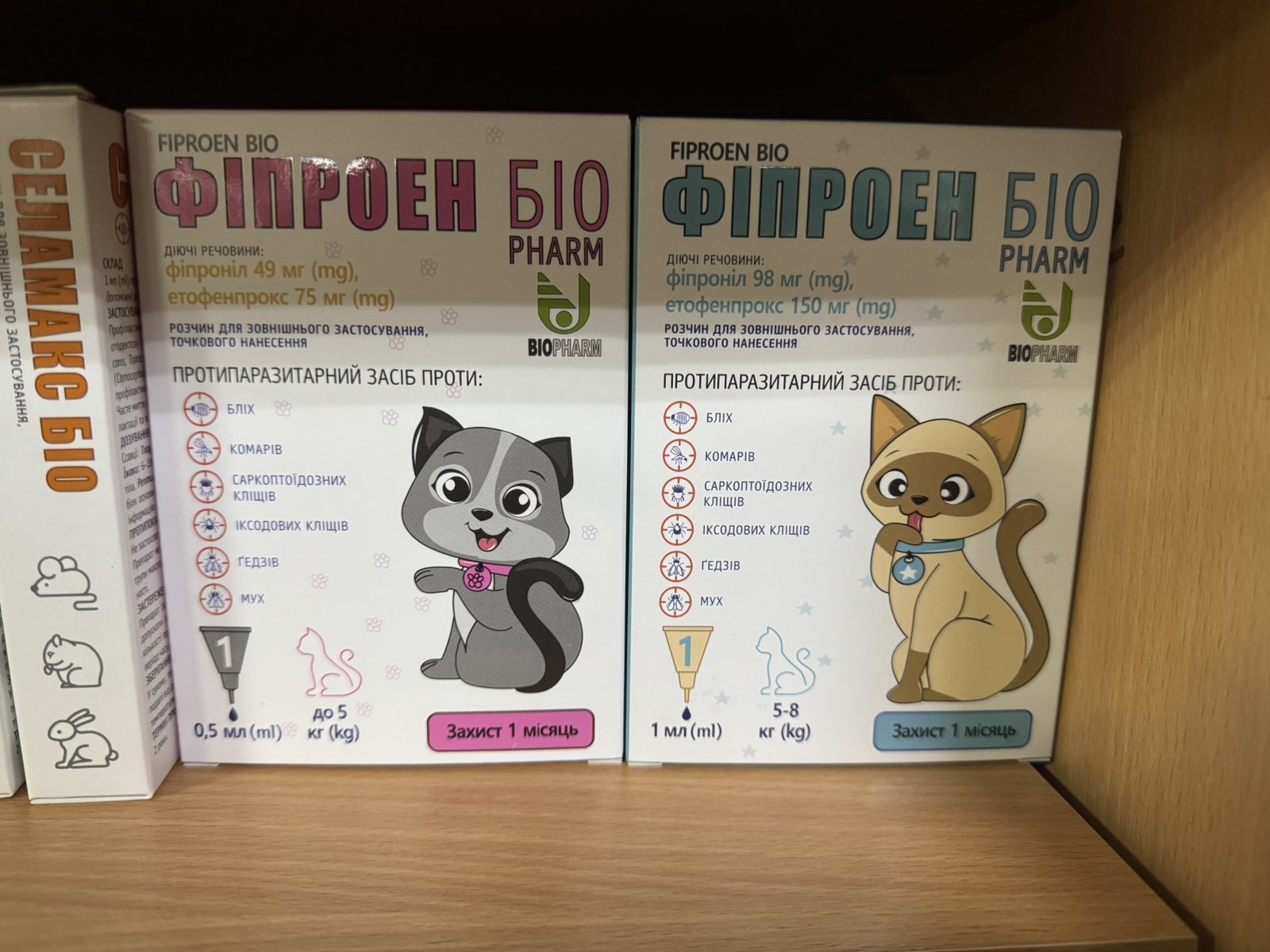 Краплі Фіпроен для собак котів від бліх та кліщів 10 – 20 кг, 1 мл, Біофарм можна придбати у Ветеринарній аптеці Ветплюс