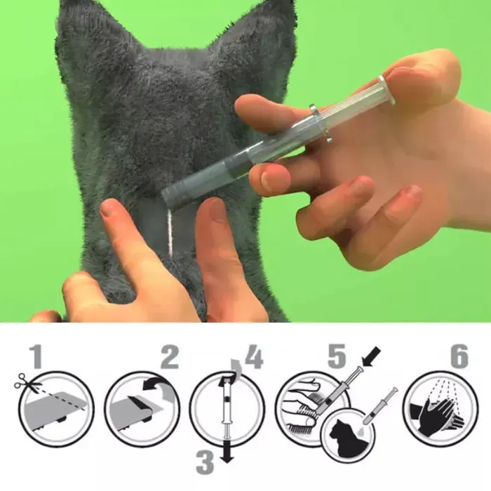 - слід уникати миття тварини шампунем протягом 2 днів після нанесення, оскільки ефективність не має даних випробувань у цьому випадку