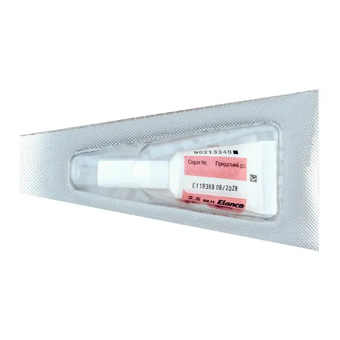 Одноразова обробка захищає тварин від москітів, комарів та мух протягом 4-х тижнів, що знижує ризик виникнення трансмісивних хвороб.