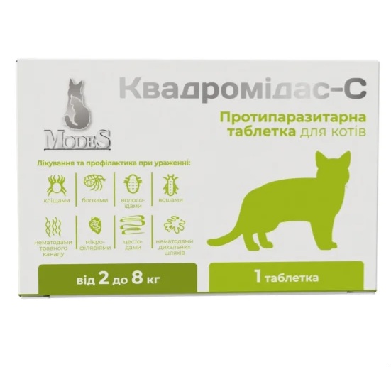 Квадромідас-С для котів 2 – 8 кг, Modes для профілактики та лікування котів від ендо та ектопаразитів