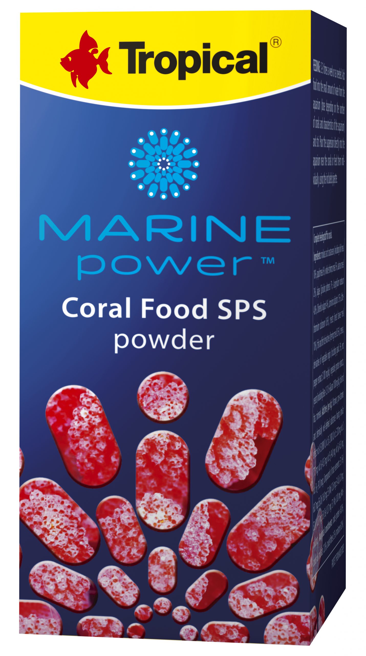 Корм с ракообразными и морскими моллюсками, а также 5 видами водорослей в виде порошка (1-250 мкм) для нефотосинтезирующих кораллов, мягких кораллов, SPS-кораллов и других фильтраторов, например, губок, асцидий и т.п. Является источником аминокислот, фосфолипидов, омега-3, каротиноидов, биологически активных веществ, поддерживающих иммунную систему, витаминов, а также микро- и макроэлементов. Регулярное применение обеспечивает рост и поддержку естественной окраски кораллов. Стимулирует рост коралловых полипов. Низкое содержание фосфора снижает риск нарушения биологического равновесия в аквариуме в результате кормления кораллов. Корм характеризуется широким диапазоном размера частиц (1-550 мкм), более 80% представляют собой частицы размером 1-250 мкм.