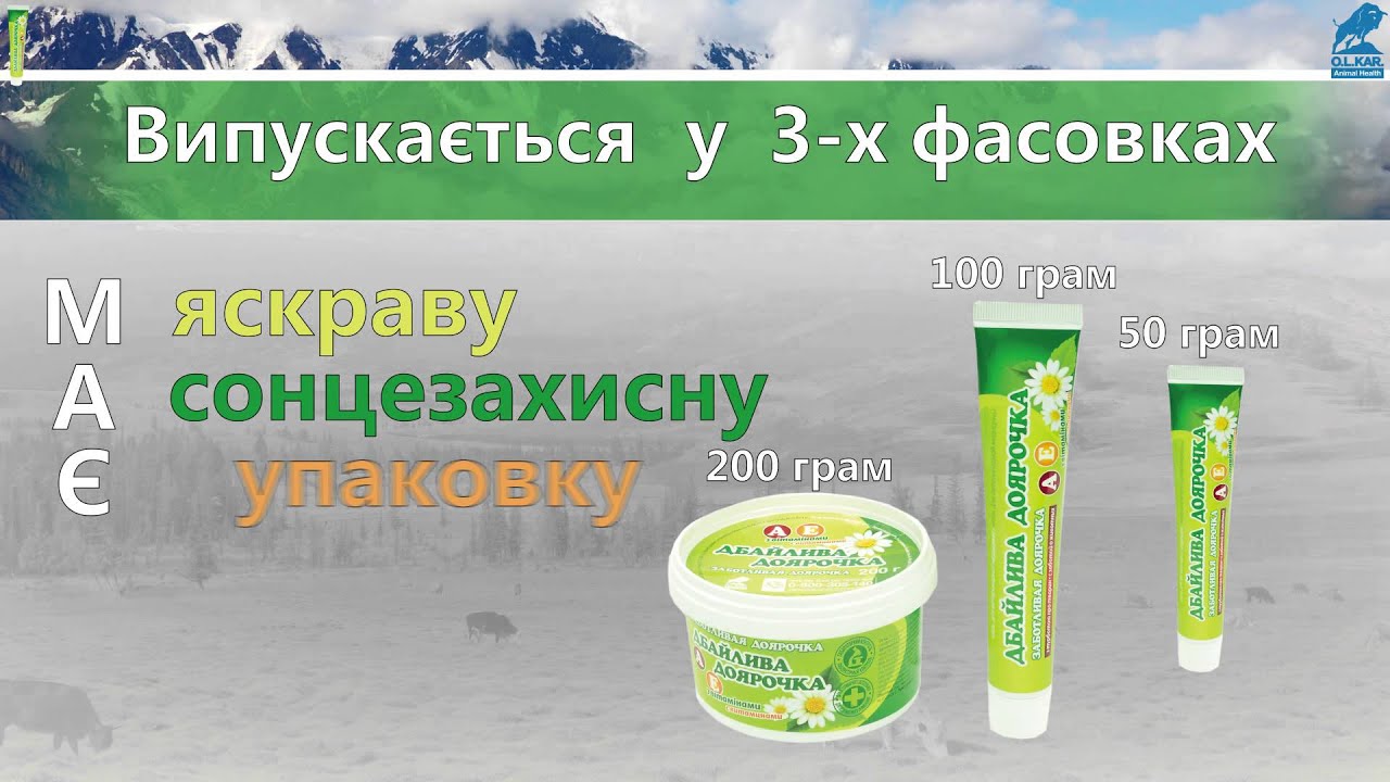 Зовнішньо для лікування  корів  та  кіз  при подряпинах, порізах, опіках, тріщинах, обмороженнях шкіри, вимені, дойок; дерматитах, спричинених нестачею вітаміну А; екземах, спричинених порушеннями обміну речовин.