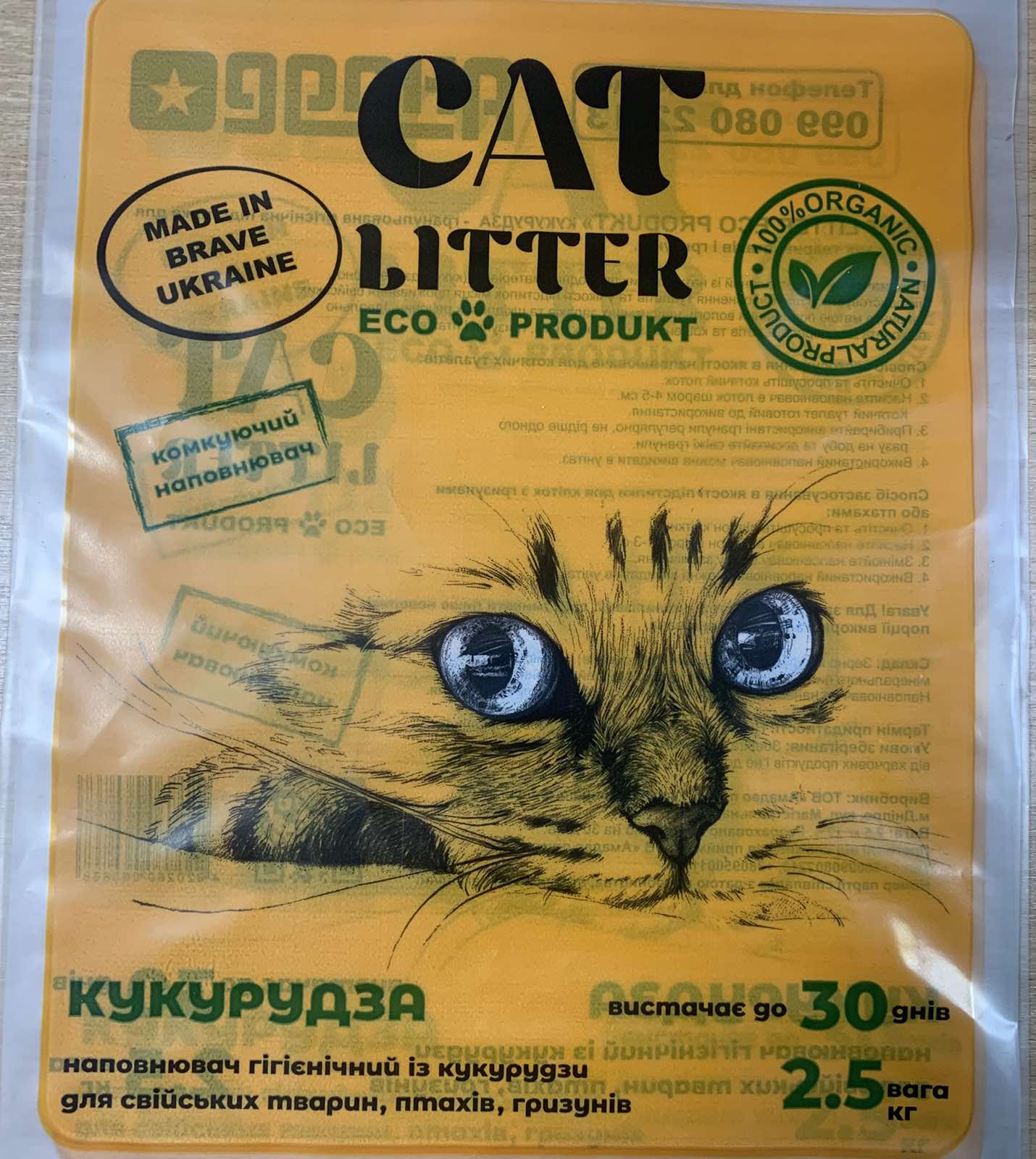 Наповнювач кукурудзяний для котячих лотків Cat litter Амадео 2.5 кг