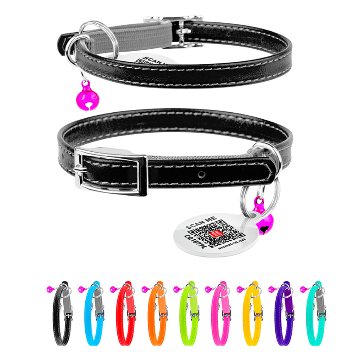 Нашийник для котів шкіряний WAUDOG Glamour з QR паспортом, без прикрас, XXS, Ш 9 мм, Дов 17-20 см чорний