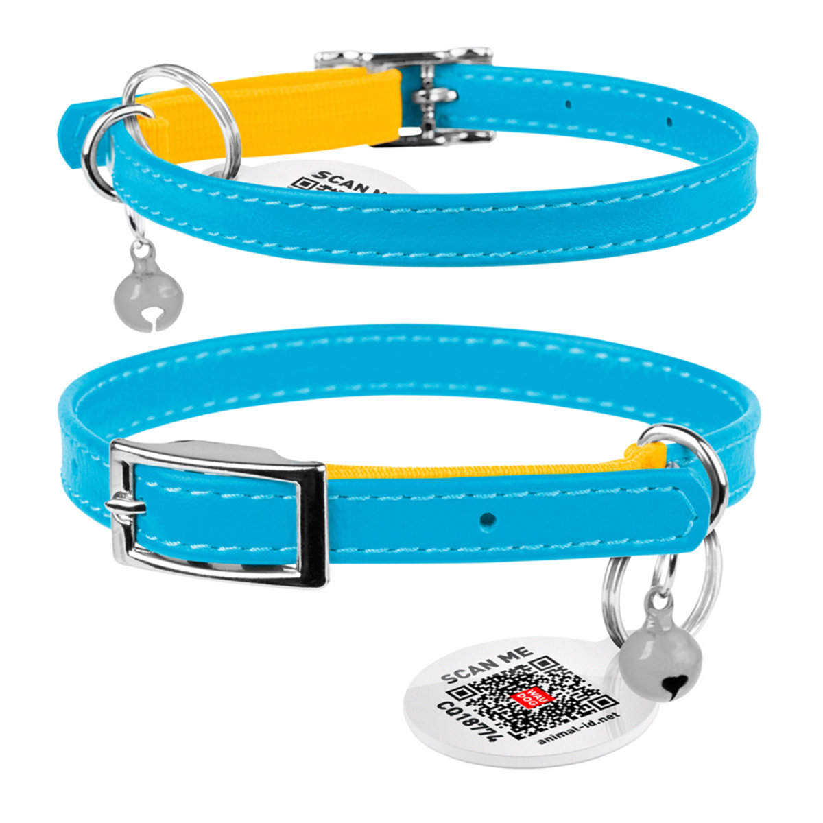 Яскравий нашийник із якісної шкіри в патріотичних кольорах нагадує швидше модний аксесуар, ніж амуніцію. При цьому має високу міцність, стійкість до атмосферних опадів. Кожен нашийник укомплектований «розумним» адресником з QR кодом, який дає власнику можливість не тільки швидко повернути собі вихованця, але й створити йому електронний паспорт.