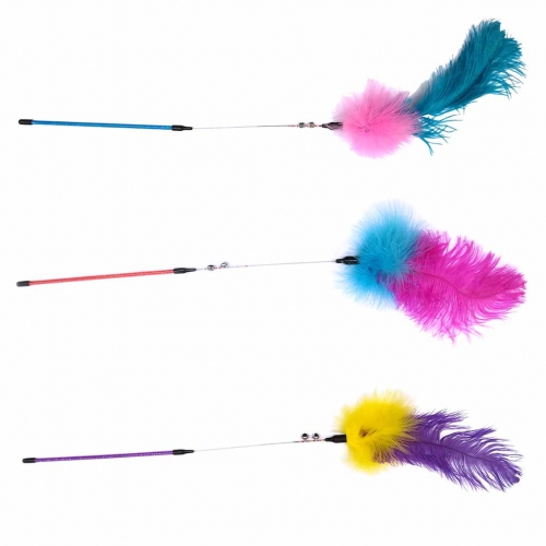Эксцентричные игрушки с блестящими ручками, забавными колокольчиками, бусинками и очень большими перьями! Доступны в разных цветах!
