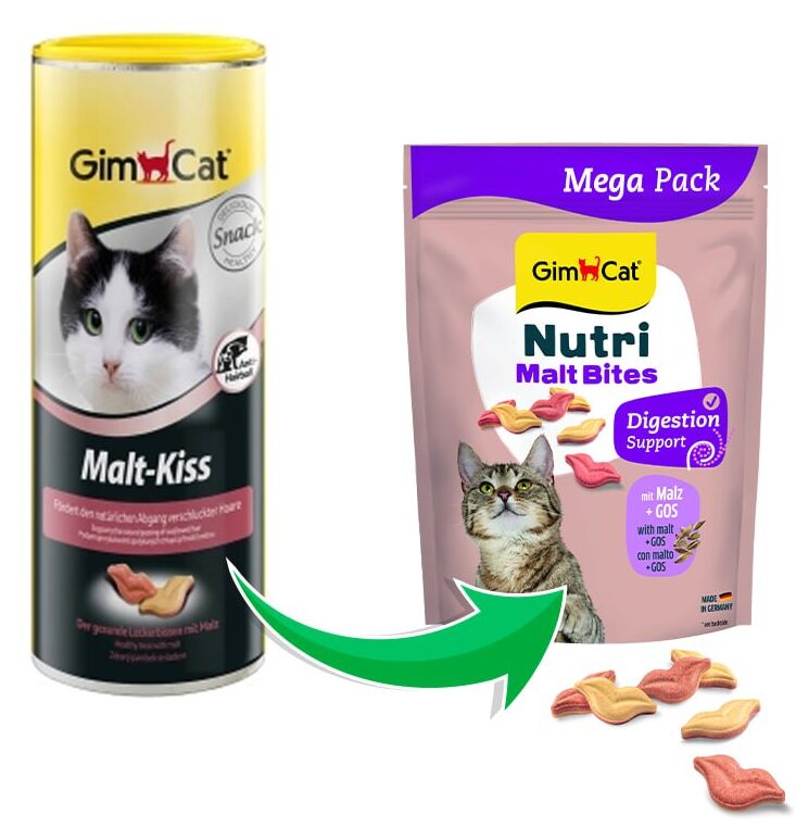 GimCat Nutri Malt Bites з ароматним солодовим екстрактом – це смачна закуска у формі губ. Солод, клітковина та ГОС позитивно впливають на здоров’я кишківника.