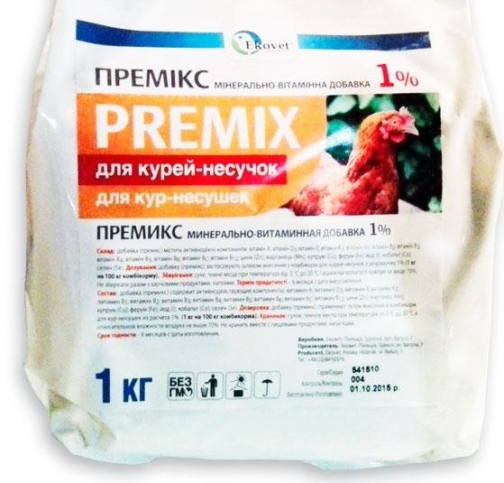 Премікс для курей несучок, 1 кг – добавка поповнює вітамінно-мінеральний баланс у курей-несучок, підвищує несучість та якість м’яса птиці.