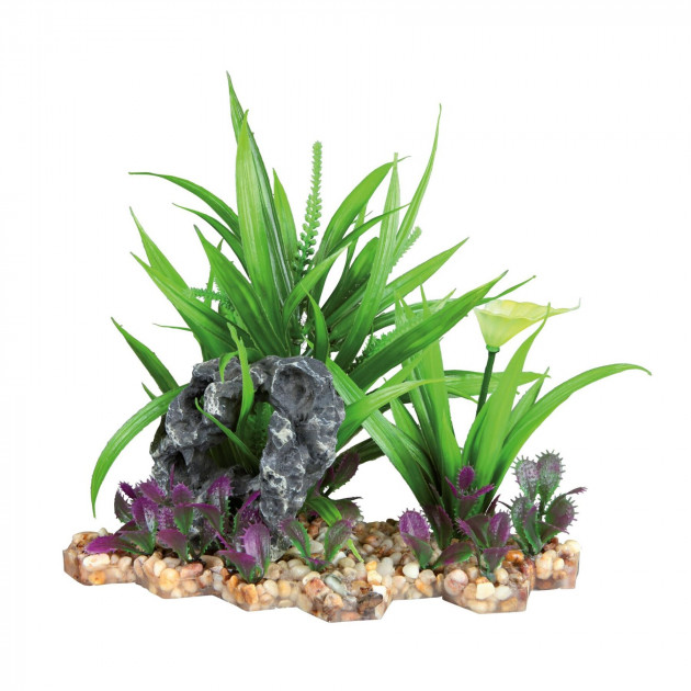 Декоративное растение на подставке Trixie 18 см. изготовлено из высококачественных нетоксичных полимеров, которые не выделяют в воду никаких вредных веществ. Они не разрушаются под воздействием воды. Основа декорации изготовлена из камней, что делает ее устойчивой.
