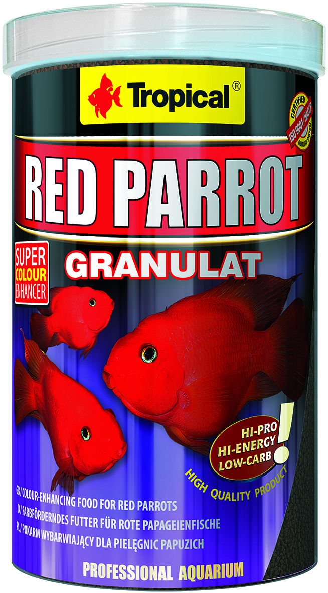 Полноценный многокомпонентный, плавающий в толще воды корм в виде гранул, обладающий особенными красящими свойствами. RED PARROT GRANULAT предназначен для ежедневного кормления цих-лид попугаев и других декоративных рыб, требующих в своей диете значительной доли натуральных каротиноидов и ненасыщенных жир-ных кислот (Омега-3, Омега-6). Оптимально подобранная рецеп¬тура гранул обеспечивает регулярно кормленным ими рыбам здоро¬вый внешний вид и превосходную кондицию. Добавка цеолита благоприятно вли¬яет на пищеваритель¬ную сис¬тему и удаление токсинов из организма рыб. КОРМЛЕ¬НИЕ: много¬кратное в течение дня неболь¬шими порциями.