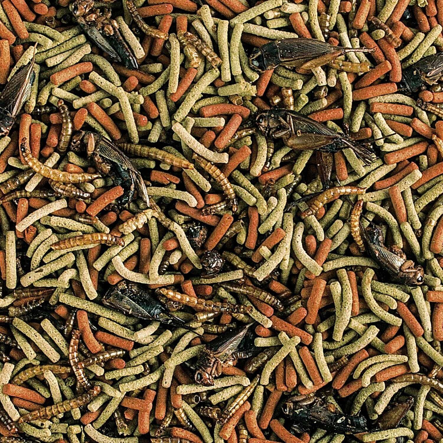 Многокомпонентный корм с добавлением высушенных личинок большого мучного хрущака и высушенных сверчков. Для ежедневного кормления агамы бородатой и агамы болотной, геккона леопардового, земноводных и водных черепах, варанов и других ящериц, питающихся насекомыми. Основным компонентом корма являются экструдированные палочки, которые содержат, помимо прочего: рыбу, креветки, криль и гаммарус. Присутствующий в корме хитин регулирует пищеварение. Благодаря тщательно отобранным витаминам и микроэлементам корм предотвращает дефицит этих веществ и поддерживает рептилий в отличном состоянии. Благодаря мягкой консистенции корма, животные более охотно его принимают.