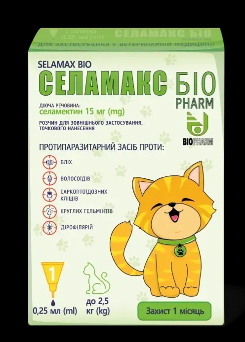 Селамакс Біо краплі від бліх ,кліщів ,гельмінтів для кошенят до 2,5 кг , Біофарм