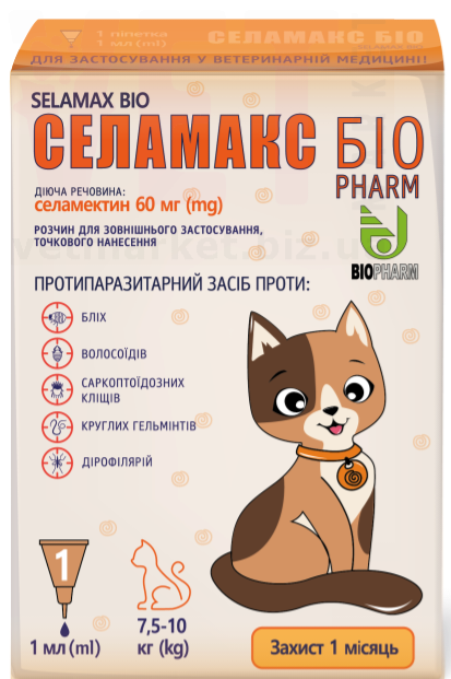 Селамакс Біо краплі від бліх ,кліщів ,гельмінтів для котам 7,5 – 10 кг , Біофарм