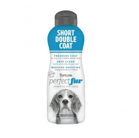 Шампунь TROPICLEAN PERFECTFUR™ для короткої вовни спеціально розроблений для лабрадорів, мопсів, біглів, ротвейлерів та інших порід із двошаровим шерстим покривом.