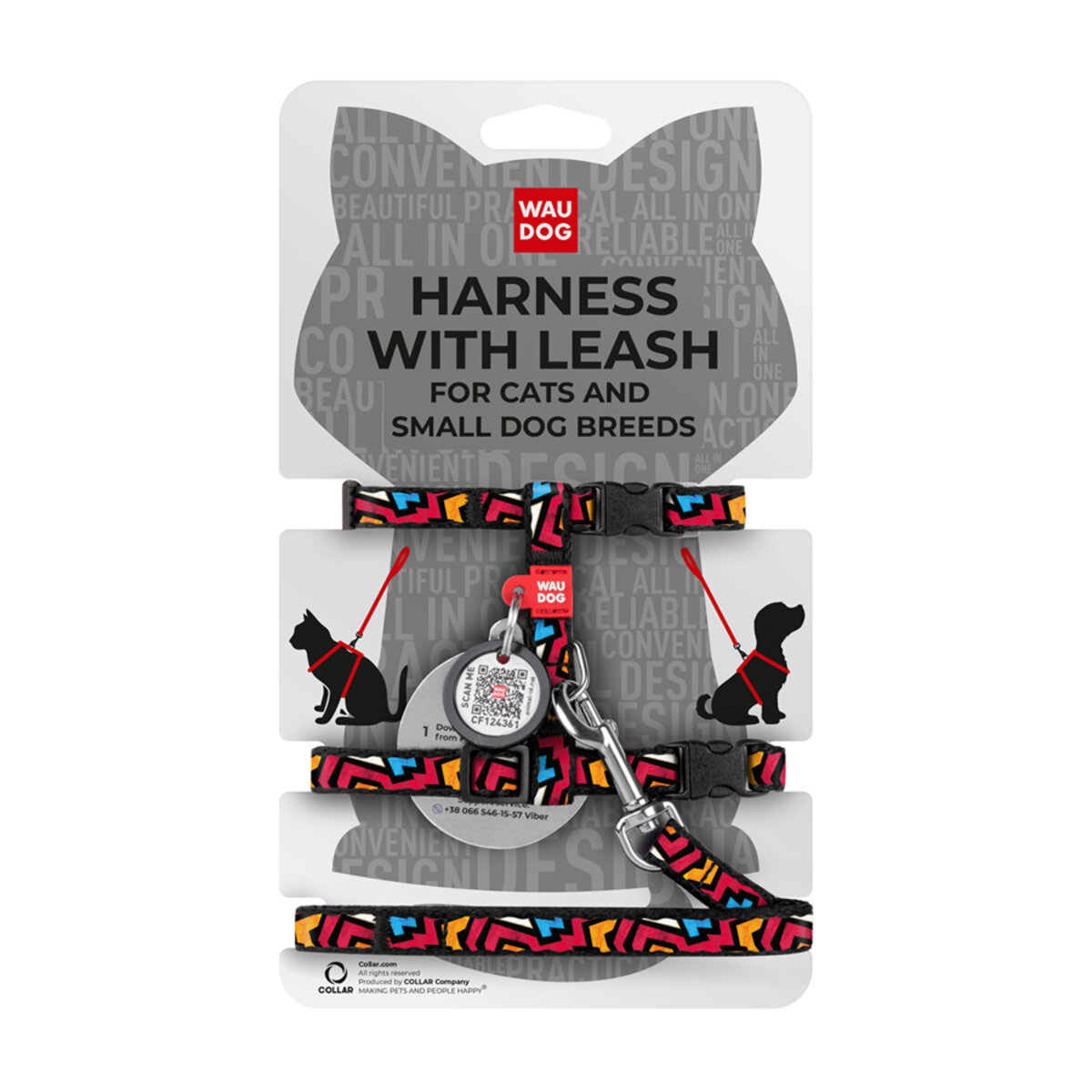Шлея з повідцем WAUDOG Nylon з QR паспортом, малюнок “Графіті”, пластиковий фастекс, Ш 10 мм, В 25-40 см, С 20-30 см