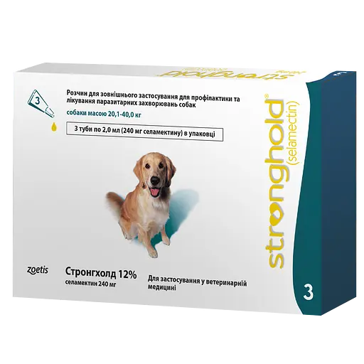Stronghold (Стронгхолд) краплі на холку від гельмінтів, бліх і кліщів для великих собак 20-40 кг