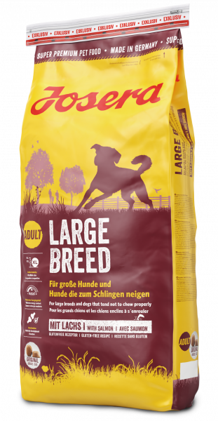 JOSERA Large Breed харчування для наших «ненаситних знавців», спеціально розроблений для їхніх потреб! Екстра великий розмір крокет забезпечує багато задоволення під час пережовування та запобігає надто швидкому ковтанню корму. З підвищеним вмістом клітковини для більшого насичення та зменшеним вмістом жиру, також підходить для наших добре вгодованих ненажер.