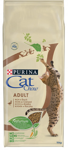 Ваша кішка – неймовірна. Для того, щоб допомогти їй зберегти цю природну неймовірність, ми розробили корм Cat Chow, до складу якого входить якісний протеїн та натуральні інгредієнти. Сухий повнораціонний корм Purina Cat Chow з качкою містить комплекс “Naturium” – особливу комбінацію волокон природного походження, а також джерело пребіотиків, що сприяє здоровому травленню. Спираючись на наш досвід у галузі харчування кішок з 1926 року, ми розробили повнораційні, збалансований корм Purina Cat Chow, в якому є все необхідне для того, щоб ваша кішка була здоровою та природно неймовірною.