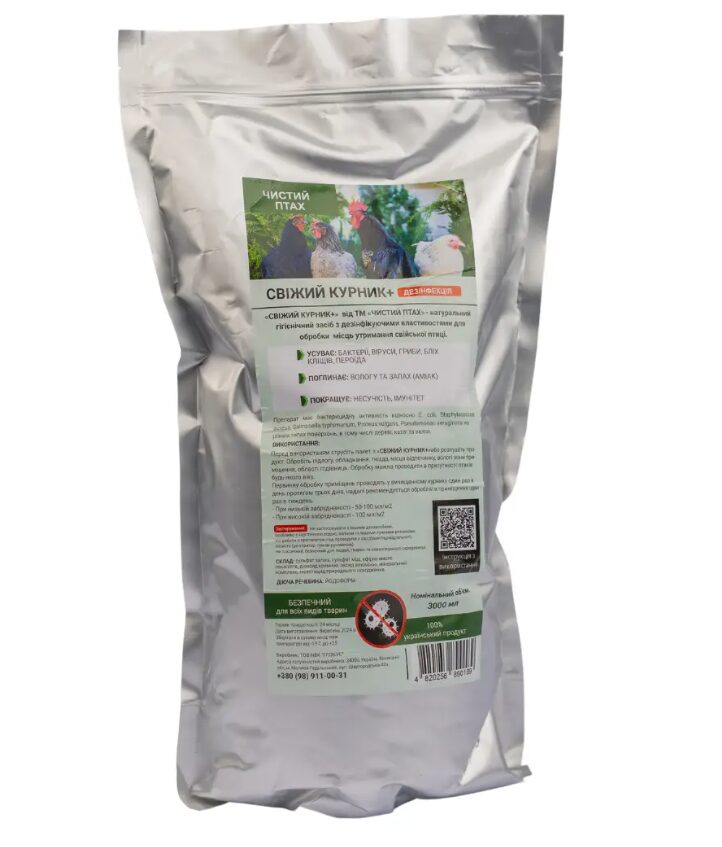 “СВІЖИЙ КУРНИК+”від ТМ “ЧИСТИЙ ПТАХ” – натуральний гігієнічний засіб з дезінфікуючими властивостями для обробки місць утримання свійської птиці.