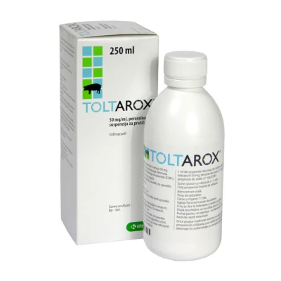 Забій поросят на мясо дозволяється не раніше ніж через 70 діб, молодняку великої рогатої худоби не раніше ніж через 63 доби після застосування Толтарокса. Мясо тварин, вимушено вбитих раніше встановлених термінів, може бути використане в корм хутряним звірам.